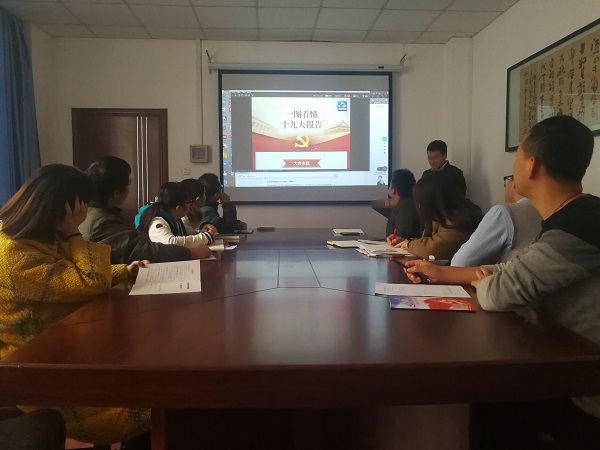 会议首先集中组织大家通过央视新闻移动网出品的“一图看懂十九大”,学习十九大报告整体框架、内容结构,使同志们能从总体上对十九大精神纲领有所了解;其次,集中学习了中央网信领导小组办公室指导、党建网出品的“学习宣传十九大精神微作品”视频,其视频解说更是生动的传达了主要文件精神;接下来,支部所有人员集体“原汁原味”学习了习近平总书记在十九大会议省报告的文字稿。