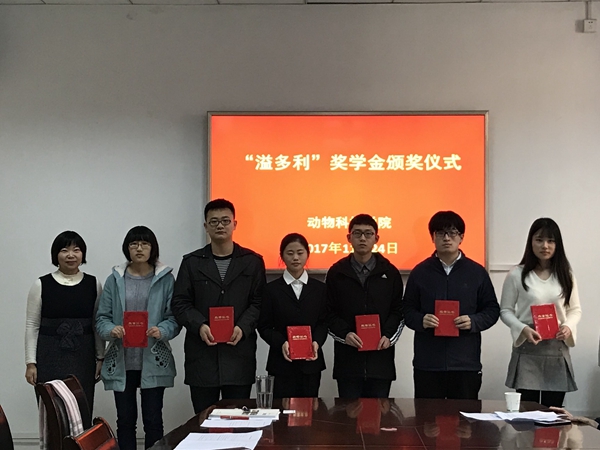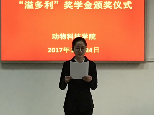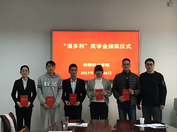 11月24日下午,学院在104会议室召开了“溢多利”奖学金颁奖仪式。广东溢多利生物科技股份有限公司人力资源总监丁思亮先生、学院党委副书记王晓娟出席了颁奖仪式。