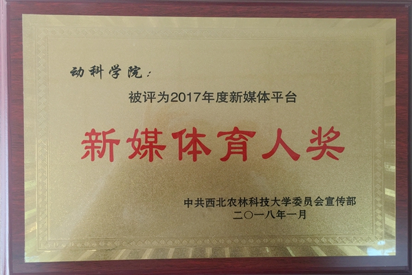 学院官方微信平台“西农动科学院”自2015年7月开通运行至今,以立德树人为根本任务,围绕学校、学院中心工作,服务广大师生,通过展示学院风貌,弘扬学院文化,传播动科声音,讲好动科故事,积极抢占新媒体育人新阵地,取得显著成效。继2015年获“特色活动奖”,2016年获“新媒体管理运行奖”后,本年度,学院新媒体再次以总分第一的成绩荣获“新媒体育人奖”,辅导员王坤荣获新媒体平台“优秀指导教师”。至此,av在线已连续三年蝉联学校新媒体考评榜首。