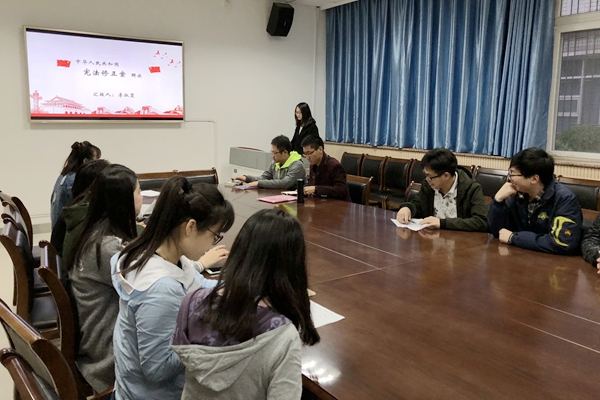 学院通过学生党支部政治理论学习、本科生班会、研究生科研团队例会和新媒体推送消息等形式,深入推进宪法学习宣传教育,帮助广大学子全面正确领会和把握这次宪法修正案的核心要义,深入理解新时代依宪治国、依宪执政的内涵和意义,引导学生尊崇宪法、敬畏宪法,努力做依法治国的坚定支持者。