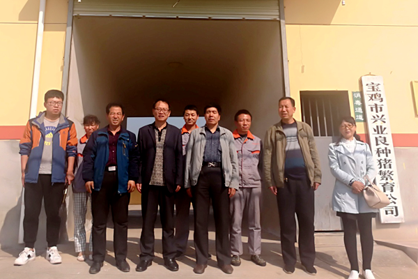 在宝鸡市兴业良种猪繁育公司,胡建宏教授一行与公司董事长王天良及企业技术团队、生产管理人员等进行了座谈,关于母猪生产管理、饲料营养、疾病防控、粪污无害化处理等存在的问题针对性地提出了改进意见和技术方案。座谈结束后,胡建宏教授与陈仓区农业局副局长郭旭华、兴业良种猪繁育公司董事长王天良等领导就深化校区、校企合作等合作事宜进行了深入讨论,达成了初步合作共识。