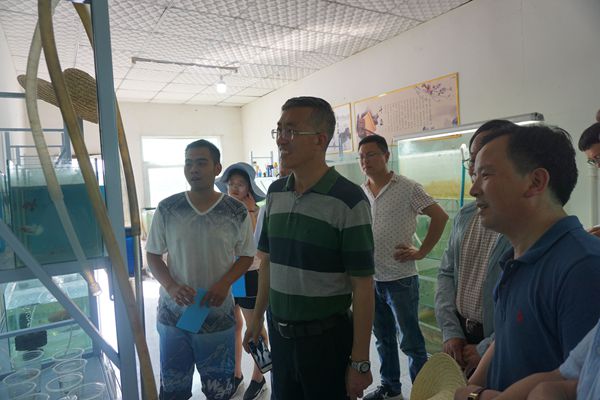 钱永华一行先后查看了水产试验示范站的秦巴山区水生资源活体库、鱼菜共生系统、苗种培育车间、饲料加工车间、实验室、多媒体教室、渔虻链技术示范中心等场所开展的相关工作。听取了试验站首席专家吉红教授关于近期试验示范工作、农业部水产养殖结构监测工作、在站学生的实习实践及科研试验进展情况以及 “鱼跃汉水星创天地”孵化企业发展状况等的汇报。