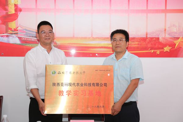 赵延安书记代表学校向陕西亮丽现代农业科技有限公司授“av在线 教学实习基地”牌匾