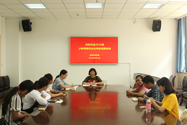 在2018届少数民族毕业生座谈会上,王晓娟副书记首先祝贺2018届少数民族同学顺利完成学业,并希望少数民族毕业生脚踏实地,走进西部,用在学校学到的知识服务民族地区,为家乡的发展做出自己的贡献,为母校争光。少数民族毕业生也纷纷发言,对四年来学院的照顾与关怀表示了感谢。会议最后,王晓娟副书记对少数民族毕业生们提出了要求与期待,她希望同学们继续提升自身素养,加强个人能力,掌握一技之长,从而更好更快在社会立足。