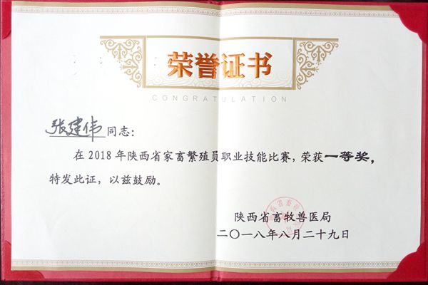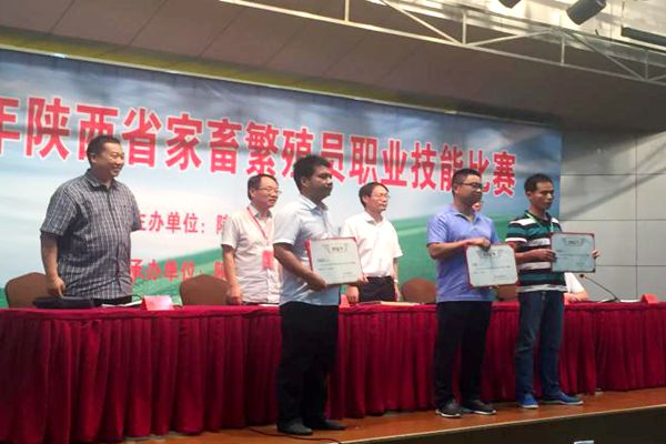 av在线高级工张建伟荣获2018年陕西省家畜繁殖员职业技能比赛一等奖(左一)