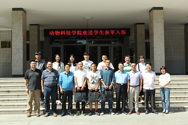 参军入伍学生张旋、黎富生、郭家骏分别对于自己的情况做了简要介绍,并对学院领导和老师们的关怀表示了感谢。2017级养殖专业硕士研究生张旋说到,“参军入伍是自己的梦想,在军营之中不仅能够保家卫国,为祖国做贡献,而且能够丰富自己的阅历,让自己的意志和体魄得到磨练,将来一定不负家人和老师的所托,用实际行动为学校争光,为学院添彩。”