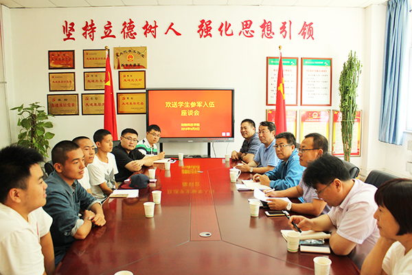 “没有稳固的国防,就没有安稳的课堂”。在参军入伍学生即将离校之际,为了让他们能够安心在军营中履行职责,为国防事业贡献自己的力量,9月8日上午,av在线在116会议室召开了欢送学生参军入伍座谈会。学院党委书记赵延安、院长姚军虎、副院长孙超、党委副书记王力、副院长凌飞,参军入伍学生及师生代表参加了会议。会议由党委副书记王力主持。