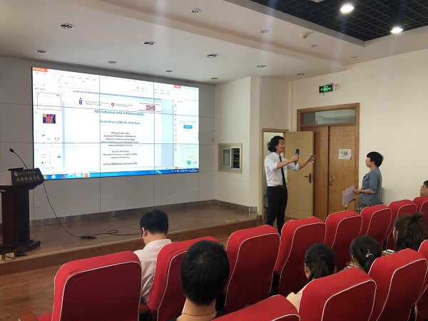 下午,Chen Xinhua教授在107会议室作了题为“Clostridium difficile Infection - Understanding Gut Microbiota and Host Immune Responses”的学术报告。学院相关师生150余人参加报告会,会议由姚军虎教授主持。会上,Chen Xinhua教授介绍了艰难梭菌结肠炎的临床症状及粪便移植技术在艰难梭菌结肠炎治疗中的应用,与会师生与Chen教授进行了深入的交流。此次报告会加深了av在线与哈佛医学院的交流与合作,对后续开展相关研究工作具有很大的帮助。