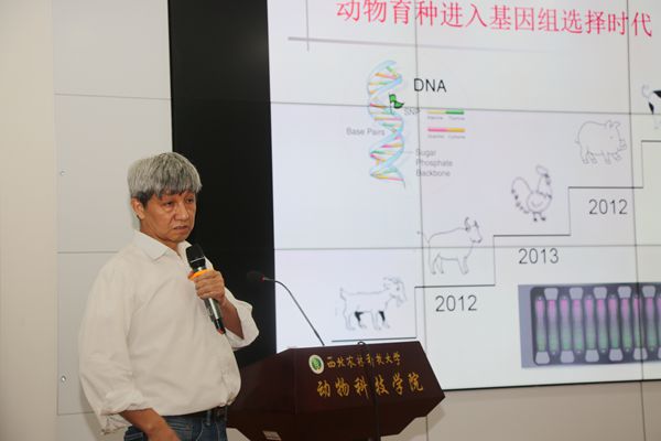 在下午的报告会上,来自山东农业大学的张勤教授作了“我国动物基因组选择进展”的报告。他表述了现阶段动物育种已经进入基因组选择时代。基因组选择最先是应用于奶牛,山羊则较晚。他还告诉大家基因组选择的优势,一是不依赖表型信息进行早期选择,缩短世代间隔提高选择强度。二是能够捕获基因组中的全部遗传变异,提高选择准确性。三是加快遗传进展,提高育种效益。同时提出了基因组选择的前景和面临的问题。来自中国科学院西安分院的李保国教授以“神秘的金丝猴王国”为题,给大家揭开了金丝猴王国的神秘面纱,他通过对秦岭山区金丝猴群体现象的研究,了解到金丝猴种群的等级、繁殖、社会关系等,解释了金丝猴越来越少的原因,呼吁大家保护生态环境,保护濒危动物。来自中国农业科学院的马月辉研究员作了“特色畜禽遗传资源挖掘”的学术报告,报告中对我国现有的动物遗传资源作了总体汇报。并重点介绍了课题组对青藏高原特有的畜禽遗传资源如藏马、臧羊等的遗传资源进行评价、分析等的深入研究进展情况。