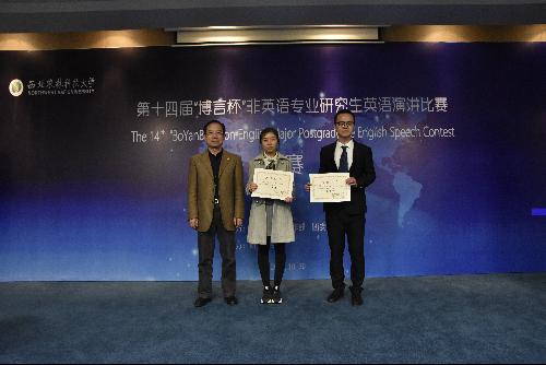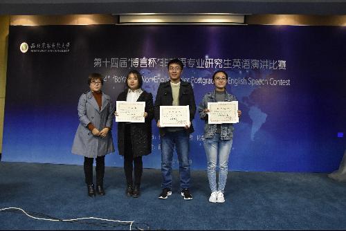 根据陕西省《关于举办西北地区第六届研究生英语演讲邀请赛暨陕西省第十二届研究生英语演讲比赛的通知》精神,学校成功举办了第十四届“博言杯”非英语专业研究生英语演讲比赛。为进一步激发av在线研究生学习英语的积极性,提升研究生英语口语表达能力,在学校和学院的大力支持下,av在线研究生会精心筹备,高质量地完成了赛事组织工作,并荣获最佳组织奖。av在线参赛选手汪悦同学荣获校级二等奖。