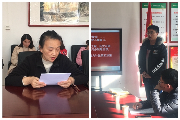 会上,教工第六党支部、研究生第九党支部进行“讲案例”工作经验交流,通过分享工作中的典型做法和宝贵经验,以达到取长补短,共同进步的目的。