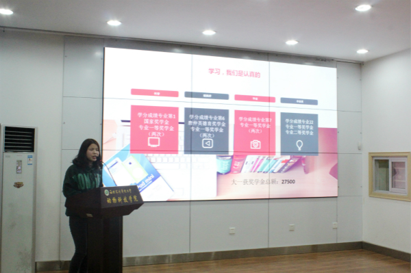 会上,学生会生活部部长彭佳诚同学宣读获奖宿舍名单,并对五星级文明宿舍评选的规则进行了简要说明。随后校五星级宿舍和院五星级宿舍代表以PPT的形式对本宿舍进行了简短的介绍,展现出了学院多元化的宿舍环境与氛围,制作精美,内容丰富的展示赢得在场观众的阵阵掌声。介绍环节结束后,党委副书记王力、辅导员韩梦璇分别为校级、院级五星级文明宿舍颁奖并合影留念。