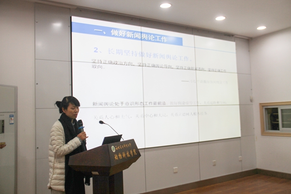 12月7日下午,学院在107会议室举办了新闻写作专题培训。校党委宣传部av在线张晴副编审受邀为学院师生通讯员、办公室秘书、新媒体、易班工作人员做《写好新闻报道经验谈》专题讲座,会议由学院党委副书记王力主持。