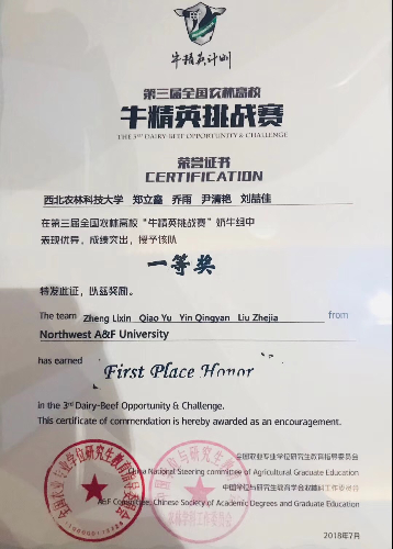 七、郑立鑫同学等荣获“第三届全国农林高校牛精英挑战赛‘一等奖’”