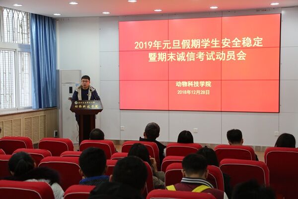 2018-2019学年第一学期即将结束,学院各层面凝心聚力,争取上好学期最后一堂课。在接下来的新学期,在学校“坚持立德树人,推进四个回归,加快建设一流本科教育”的号召下,动科学院将继续狠抓学风教风考风,为学校建设一流本科教育贡献新力量,迈上新台阶。