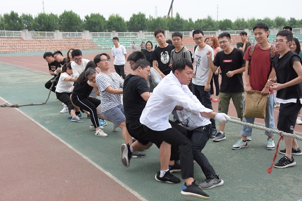 盛夏六月,毕业季如期而至。为欢送2019届毕业生,让毕业生尽情挥洒青春,畅叙真情,6月18日下午,av在线于北校区田径场举办了2019届毕业生拔河比赛。学院党委副书记王力、辅导员、和全体毕业生参加了本次比赛。