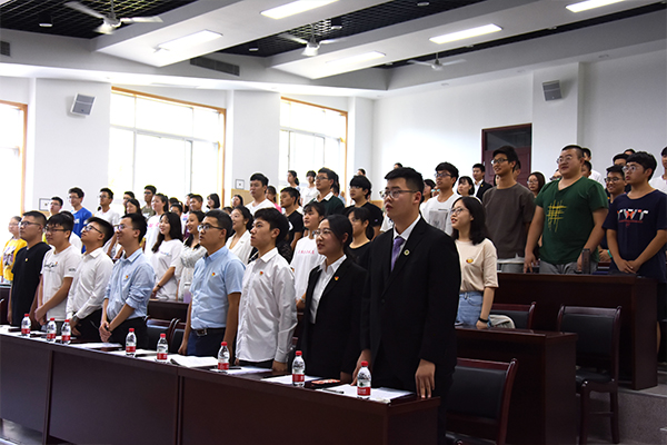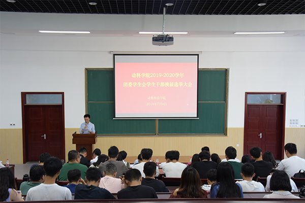 为加强学院团学工作的建设,促进团学队伍的壮大与新生力量的凝聚,提升团委学生会学生干部引领和服务广大学生的能力和水平。7月4日,学院在4323报告厅召开了2019-2020学年团委学生会学生干部换届选举大会。学院辅导员、2018届团委学生会干部、学生代表到场参会,学院党委副书记王力出席会议。