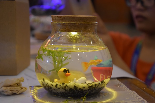 在活动最后,营员们亲身实践,制作一个属于自己的生态鱼瓶,进一步深刻了他们对微观水生态的认知,同时通过实践环节丰富本次科学活动的乐趣。