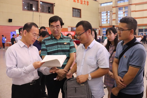 当日下午,校党委副书记闫祖书等一行校领导莅临av在线迎新点,视察迎新准备工作。学院党委副书记王力介绍了学院相关迎新准备,并展示了特别为新生准备的书包与胸牌,“书包由广西金陵牧业有限公司赞助,里面有数据线、外面有USB接口,款式新颖,功能实用;同时我们的专属胸牌可以在军训期间让新生们快速找到队伍,增加新生的归属感。”闫书记对此给予高度肯定。