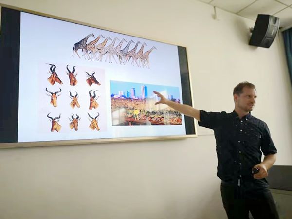 报告会上,Rasmus Heller首先介绍了其团队前期对非洲大型动物的群体历史和演化基因组学的研究成果,利用基因组学数据构建了非洲反刍动物的系统进化关系,指出人类活动对各种动物的群体大小具有重要影响。同时深入介绍了对斑马、麝香牛、中南大羚羊等重要野种物种群体演化历史的研究,并对其正在进行的牛属不同物种(普通牛、瘤牛、巴厘牛和爪哇野牛等)基因交流的研究进展进行了介绍。