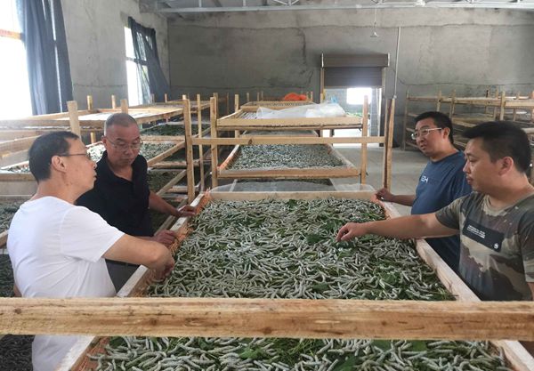 在镇巴县农业农村局韩文胜副局长和蚕桑技术指导站康树仁书记陪同下苏超研究员一行先后调研了小洋镇绿色家园合作社养蚕工厂蚕房建设,观音镇金桂园合作社新建桑园长势情况和七星园合作社秋蚕省力化饲养情况,针对调研中发现的问题提出了具体意见,现场进行示范指导。并同县蚕桑站就进一步合作,加强蚕桑技术帮扶进行了沟通交流,捐赠了蚕桑病虫害防控挂图和技术资料。