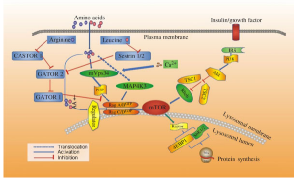 近年的研究表明,氨基酸不仅是合成蛋白质的底物,而且还是调控蛋白质合成的信号分子。氨基酸对蛋白质合成的调控作用包括正调控作用,也包括负调控作用。氨基酸能够通过相关信号通路在翻译等多层次调控相关基因的表达,翻译水平的调控作用通常发生在翻译的起始和信号传导途径。真核翻译起始因子2α的磷酸化是控制翻译起始的关键分子,氨基酸能够通过调控其磷酸化状态从而影响翻译起始。翻译起始中,mRNA与翻译起始复合物结合的另一调控途径是哺乳动物靶标雷帕霉素靶蛋白信号通路,其通路内的核糖体蛋白S6的磷酸化状态是调控关键。核糖体蛋白S6磷酸化状态的改变可能与细胞内总蛋白质的合成有关。该论文基于团队已有的研究成果,系统总结了氨基酸调控蛋白质合成分子机制的最新研究成果,并着重介绍了未来的研究趋势。
