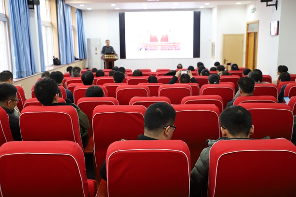 曹军会指出,在庆祝中华人民共和国成立70周年之际,党的十九届四中全会对决胜全面建成小康社会、全面建设社会主义现代化国家,对巩固党的执政地位、确保党和国家长治久安,具有重大而深远的意义。希望广大教职工把思想和行动统一到中央决策部署上来,用党的十九届四中全会精神武装头脑、指导工作,推动学院治理体系与治理能力现代化,为学校“双一流”建设贡献智慧和力量。