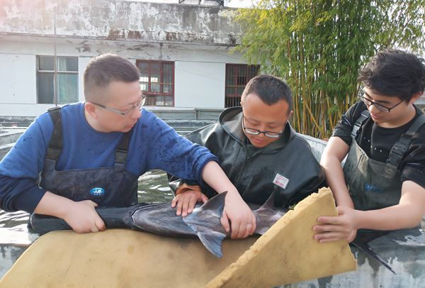 随着水温上升,繁殖季节的到来,试验站的人工繁殖工作在清明之后如期拉开序幕。经过一系列精心准备,在吉红教授的带领下,于4月7日对匙吻鲟进行了催产,经亲鱼选择、注射催情激素及人工取卵等环节,于4月8日获得受精卵31.2万枚。在av在线大学生创业企业安瀛农业科技公司的参与下,全体人员日夜奋战,精心孵化受精卵,获水花苗二十余万尾,规模比往年显著扩大。试验站还将与安瀛农业科技公司合作,进行匙吻鲟的苗种培育,力争为用户提供健康优质的大规格苗种。