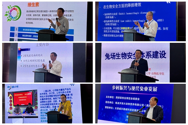 与会11位专家、企业高管分别作学术报告,分享最新科研成果,分析产业存在问题,探讨行业发展思路。报告依次为:国家兔产业技术体系岗位专家、中国农业大学武拉平教授作《现代兔业发展与乡村振兴》,陕西省宜君县农业局郭延红局长作《宜君兔业扶贫与乡村振兴实践》,国家兔产业技术体系岗位专家、扬州大学吴信生教授作《家兔品种培育与实践及江苏兔业发展概况与成就》,国家畜禽遗传资源委员会顾问委员会成员、江苏省畜牧业协会秘书长朱满兴研究员作《新时代家兔育种方向的科学把握》,国家兔产业技术体系岗位专家、中国农业大学王红英教授作《基于深度学习的图像处理技术在肉兔养殖智能化上的应用》,国家兔产业技术体系岗位专家团队成员、河北农业大学陈赛娟副教授作《饲料禁抗后,如何提高家兔生产效率》,陕西省家兔产业技术体系岗位专家、杨凌天地大动物营养有限公司技术总监崔伟作《精益求精做好每一颗“西农泰高”兔料》,太原市威尔潞威科技发展有限公司市场部经理王震作《浅谈影响种兔繁殖性能的营养问题》,青岛兔爱动物科技有限公司总经理阎英凯作《主动防御 降损增效》,南京华兔生物科技有限公司、江苏农科院畜牧兽医研究所薛家宾研究员作《如何正确预防2型兔瘟?》,陕西家免产业技术体系岗位专家、av在线 王兴龙教授作《兔场生物安全体系建设》。