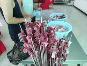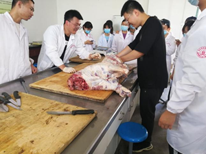 羊肉是高蛋白、低脂肪、低胆固醇的营养美食,其性甘温,补益脾虚,强筋壮骨,益气补中,经常食用可增强体质,使人精力充沛,延年益寿。我国是羊肉消费大国,目前羊的屠宰已经形成了产业化、规模化、工厂化的从屠宰到加工一体化的产销体系。在羊屠宰实习中,我们在屠宰间,使用现代羊只分割的方法,对羊只进行屠宰加工。放血、去内脏、剥皮、去头蹄等一系列操作完成后,杨雨鑫老师指导我们对胴体重、屠宰率、熟肉率、失水率等指标进行测定。一番操作结束后,大家已精疲力竭。休息之余,同学们各显身手,制作出多种羊肉美食,品尝通过辛苦的劳动换来的美味。