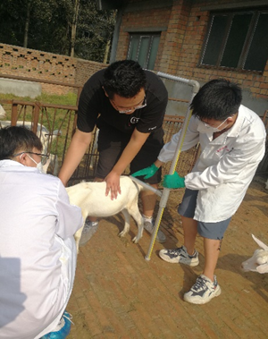 本次实习从羊场的设计规划开始,现代规模化羊场建设,是在全舍饲高效养殖的条件下,最大程度发挥羊的生产性能,有效控制温度、光照、噪声等生产环境,建造适宜羊生产生活的建筑设施。在设计的过程中,首先要确定所养羊的品种,从而确定厂址所在的区域。一般来说绵羊养殖场建设在北方,山羊养殖场建设在南方。由于我国东西、南北跨度较大,不同地域的生态环境差异较显著,因此要根据历史环境数据,和所养品种对环境的适应特点,选择适宜的生态区。选择好区域以后,要对场址进行更加细致的选择。羊场场地一般要求地势平坦干燥,向阳背风、排水良好,地下水位要在2m以下。场址远离主要交通干线,减少汽车噪声的影响,但同时要保证有良好的交通条件,方便羊只运输。确保场址周围有良好的基础设施建设,保证水电的良好供应,与外界联系畅通。远离居民区、屠宰场、养殖场等其他建筑设施,并建造绿化隔离带,防止病毒传染及污染扩散。在建设羊场时,应参考风向、地势,规划建造生活区、生产区、饲养区及隔离区,确保生产活动有序开展。并建造消毒室、饲草料库、药浴池、水塔、粪污发酵池等配套设施,以保证生产活动高效进行。在杨雨鑫老师的指导下,我们使用卷尺、激光测距仪等工具,对av在线 畜牧教学试验站羊生产教学基地的规划布局数据进行测定,了解9栋畜舍的整体布局和内部详细构造,并绘制畜场规划图。我们也对各畜舍所养羊只状况进行询问,了解场内青贮塔等附属设施的使用情况,对场址规划的科学性进行探讨,分析规划中存在的不足之处,对后期的实习奠定了坚实基础。