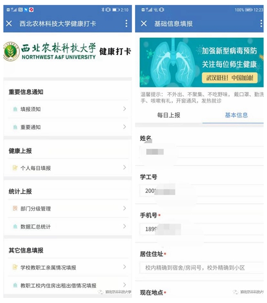 近日,学校根据疫情防控工作安排,开发了手机“健康打卡”信息报送平台。