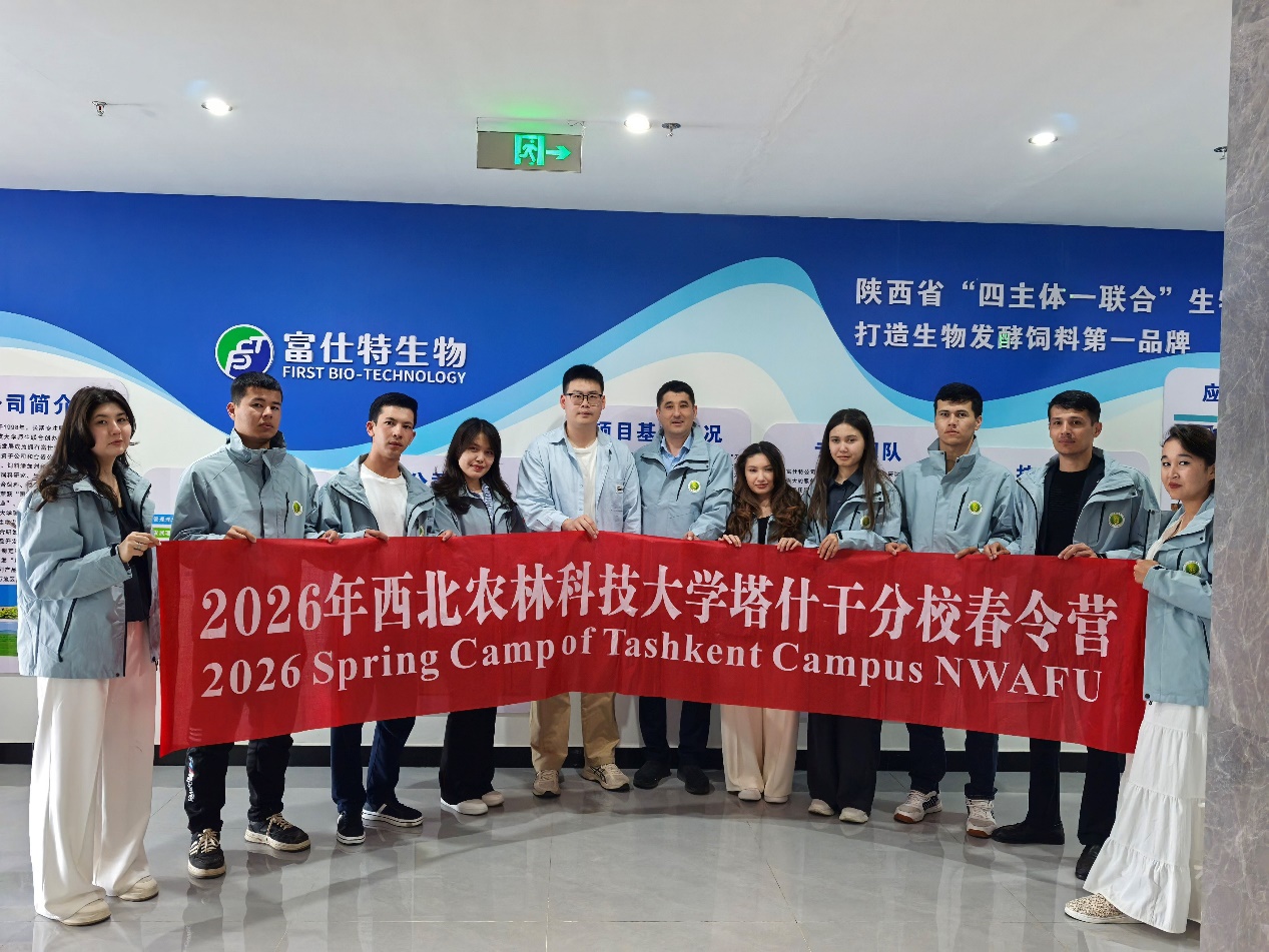 4月17日下午,av在线 迎来了av在线 塔什干分校的春令营师生代表团。代表团10余人在凌飞副院长、薛虎平教授、杨雨鑫研究员、国际学院志愿者等人的关心陪伴下,先后参观了麦康维生物技术研发平台、陕西杨凌富仕特生物科技有限公司和学院抗菌肽研发平台。在为期半天的密集行程中,代表团沉浸式探访了从前沿基础研究、校企联合创新、到产业应用转化的完整畜牧业科技生态链,亲身感受了我校畜牧业的创新实力与发展脉搏。