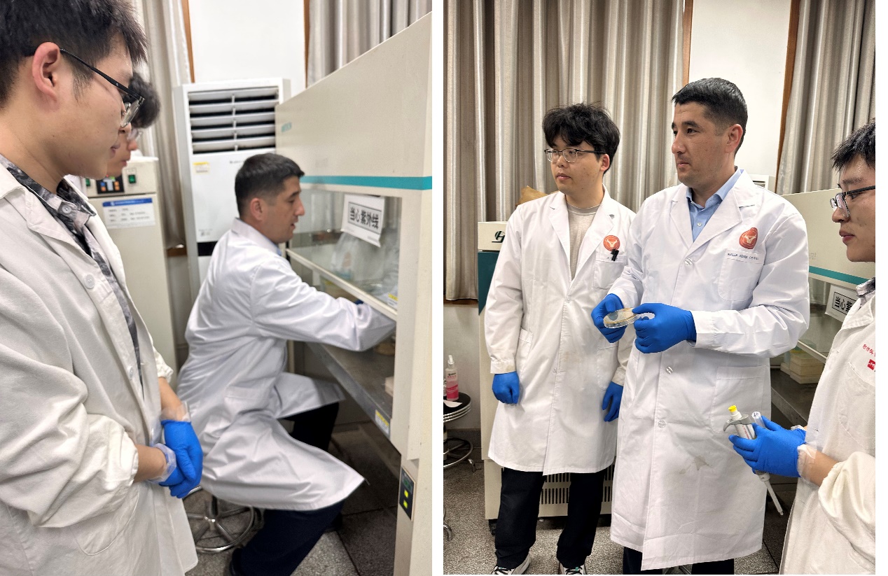 行程的最后环节,代表团前往南校作物抗逆与高效生产全国重点实验室,参与了av在线的抗菌肽研发平台。平台师生细致讲解了抗菌肽相关产品开发的思想、技术路线和阶段性成果,并指导代表团师生尝试完成了移液器使用、平板涂布和抗菌肽抑菌实验,提高了参观趣味性和师生对抗菌肽研究的感性认识。通过双方深入交流,代表团增强了对学院发展概况、科研体系与人才培养模式的认识,也为未来我校塔什干分校的发展及国际合作奠定了良好基础,使本次参访画上了圆满句号。