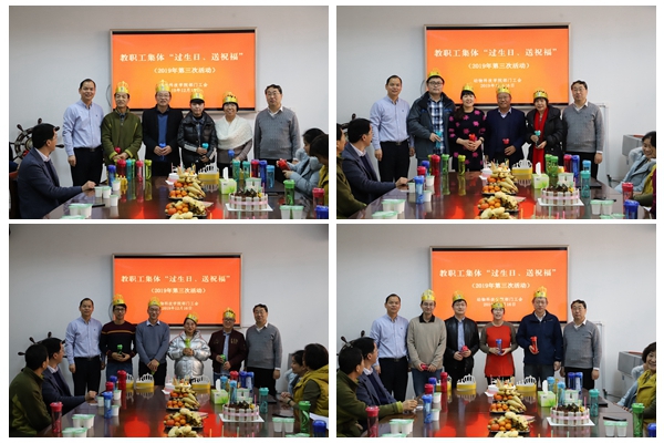 12月16日,学院教职工集体“过生日、送祝福”活动在104会议室顺利举行。学院党政领导、各系主任、部门工会委员、教师代表与11月、12月和2020年1月的“寿星”们共聚一堂,现场温馨感动,其乐融融。