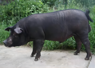 关中黑猪作为我国重要的肉脂兼用型培育猪品种,是上世纪七八十年代由八眉猪、内江猪和巴克夏杂交选种培育而成,并入选了国家农产品地理标志登记保护名录。该品种具有肉质优良、耐粗饲、泌乳力高和抗逆性强等特点,但也存在日增重低、沉积脂肪能力强导致背膘较厚和瘦肉率低的问题,严重影响其产业化发展。近年来,团队以大白猪为父本、关中黑猪为母本,持续开展选育兼具生长速度快、肉质优良、繁殖力高、抗逆性强和适应性好等特色的关中黑猪新品种工作。团队通过继代选育,目前已至第三世代,群体规模达600头,核心群母猪120余头,公猪35头;此外,百公斤日龄196天左右,产仔数13.5头,肌内脂肪3.8%。因此,目前选育的猪群体生长速度、产仔数和肌肉大理石纹相关的肉质性状明显改善。
