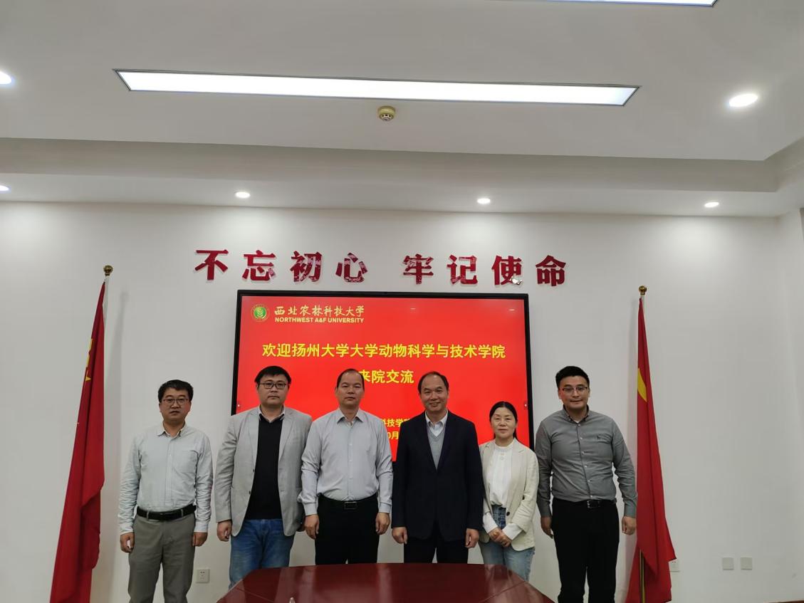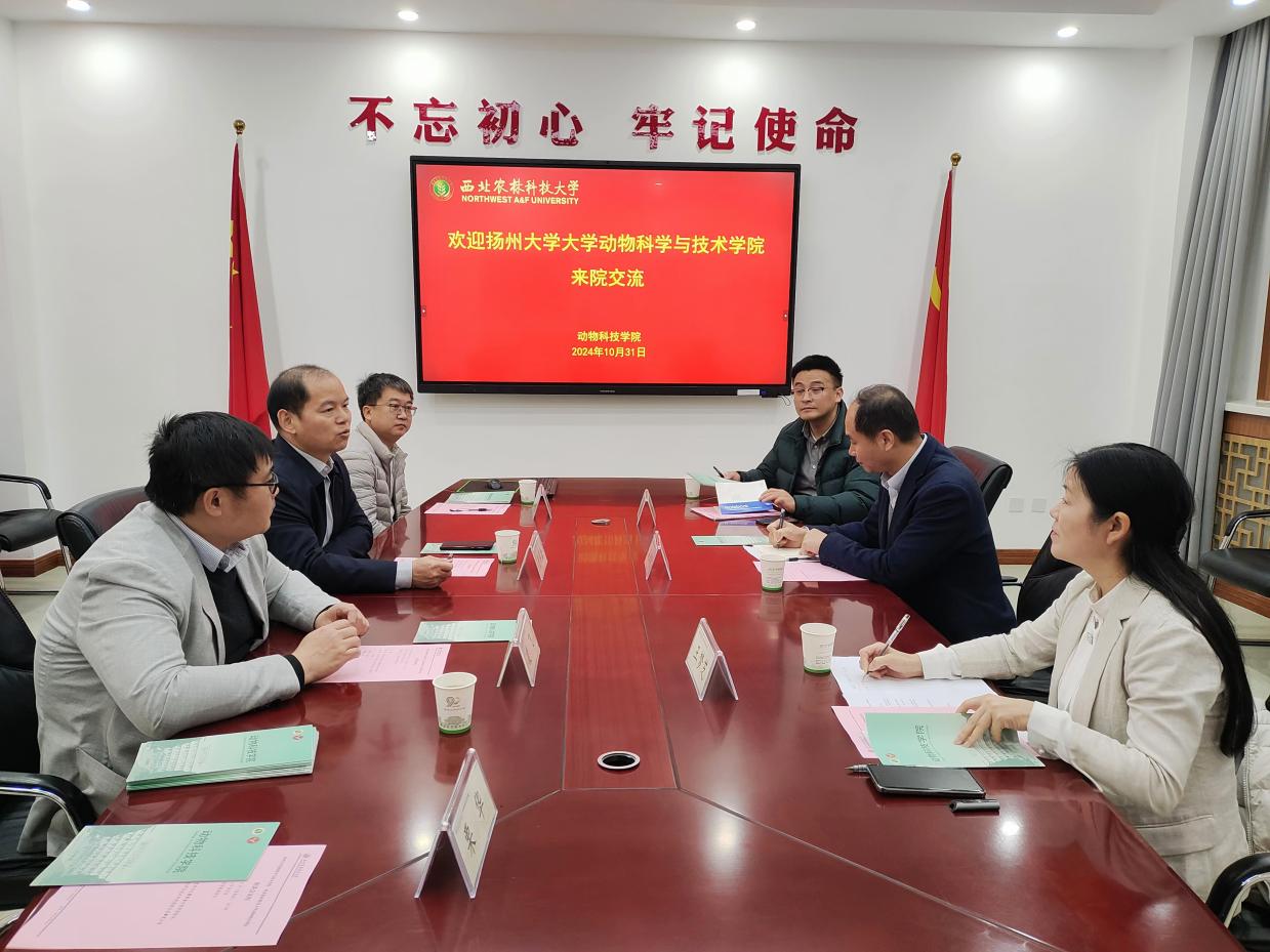 10月31日上午,扬州大学av在线 与技术学院党委副书记高红明、副院长王梦芝、动科专业负责人陈志一行3人来院调研。学院党委书记曹军会、智牧系主任王洪宝参加会议,会议由副院长凌飞主持。