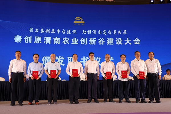 聘任av在线胡建宏教授为“秦创原渭南农业创新谷建设咨询委员会专家”(右三)