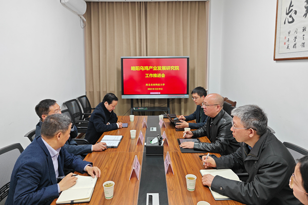 刘文荣一行听取了杨小军教授关于“略阳乌鸡产业发展研究院2023年度工作规划”的汇报,肯定了研究院的工作成绩,并就研究院工作开展过程中遇到的问题和困难进行讨论交流。刘文荣强调,略阳乌鸡是全省唯一保护的家禽品种、是国家地理标志产品,要把“大项目 大平台 全产业链”的发展思路落到实处,建设县域主导特色产业,带领更多的老百姓增收致富。刘文荣要求,略阳乌鸡产业发展研究院要立足产业、赋能展业、振兴产业,为略阳乌鸡产业的转型升级贡献力量,略阳县各级部门要主动作为、及时跟进、充分配合,完成队伍、平台、政策配套,确保研究院硬软件实力的稳步提升,不断扩大务实合作,推动研究成果转化落地。